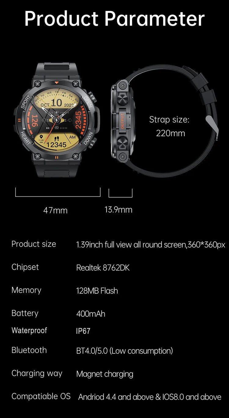 • HD Bluetooth Call Smart Watch :Make and receive calls directly from your wrist with HD voice quality.